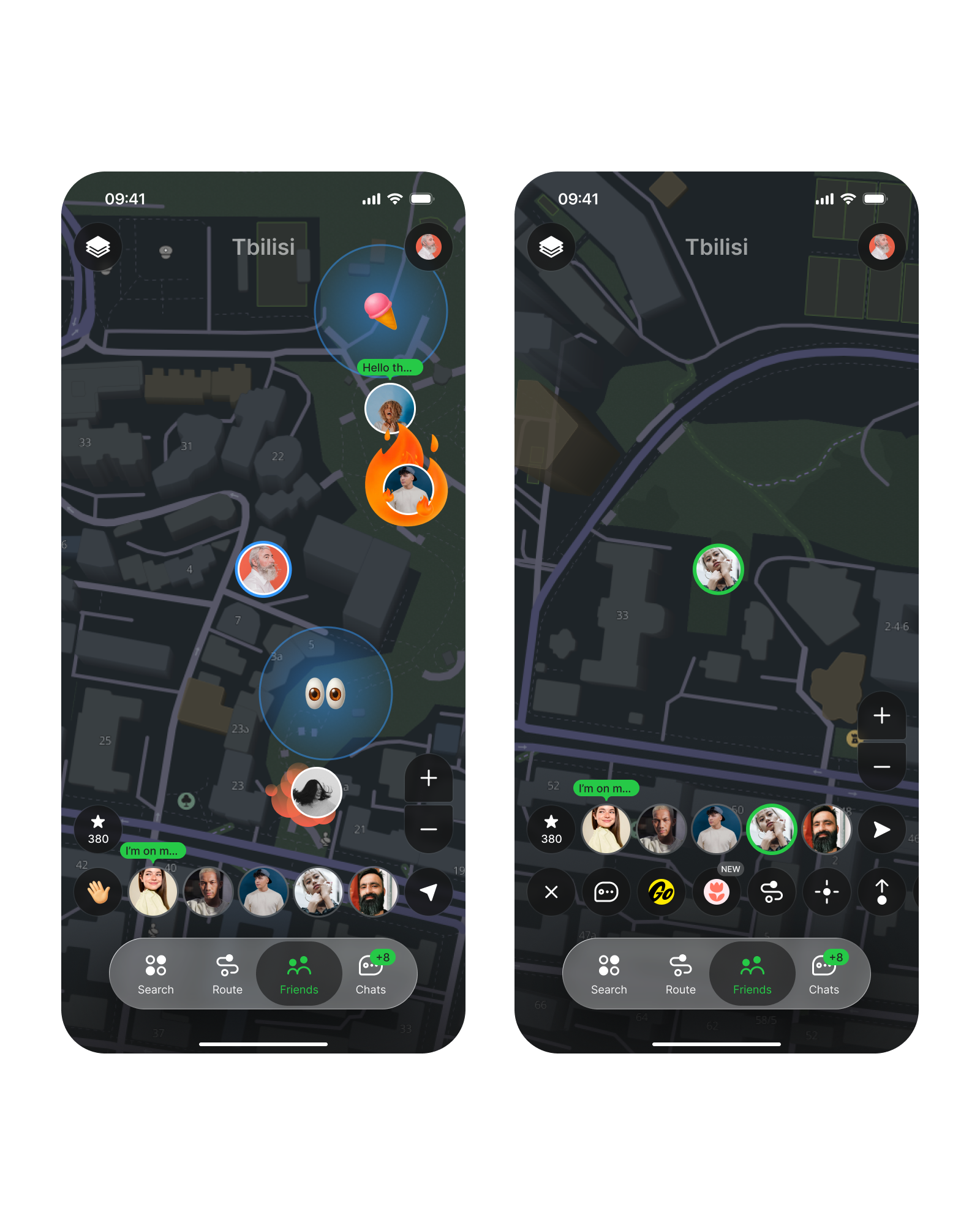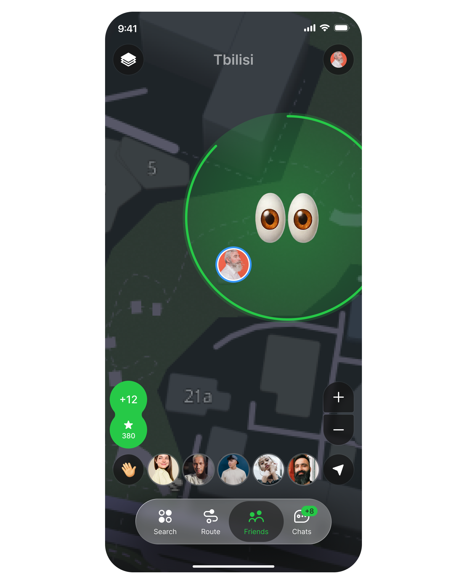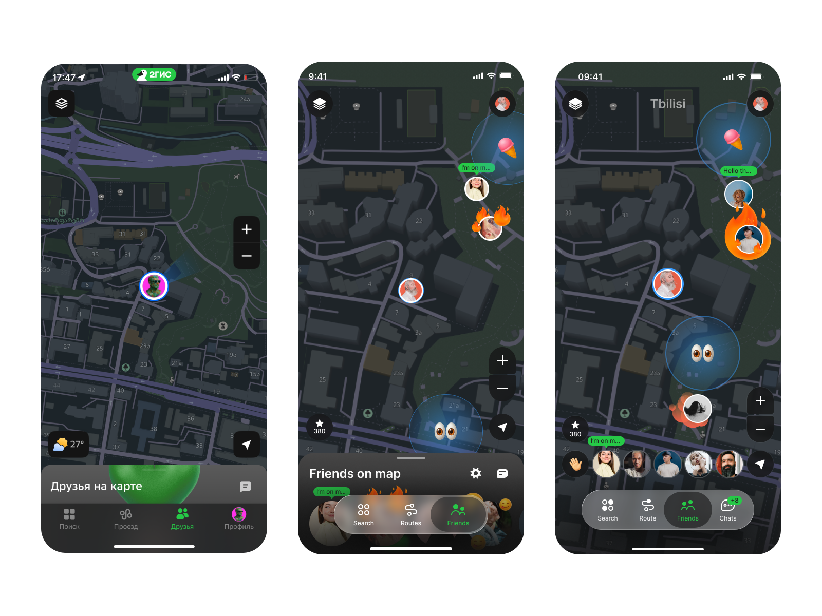 A concept of redesign and feature enhancement for 2GIS, aimed at increasing the number of active users and overall engagement through the development of Friends and Chats — a social layer that combines maps, communication, and shared experiences.