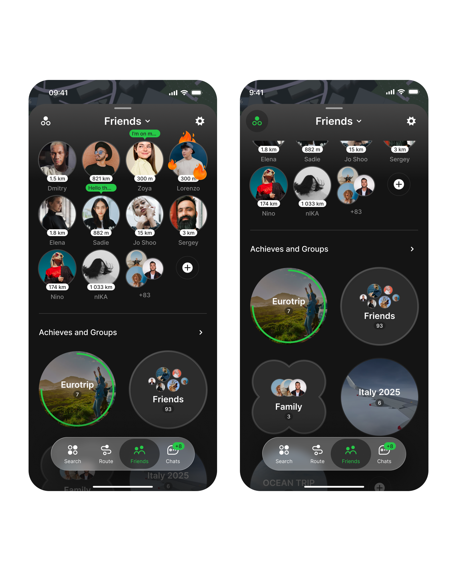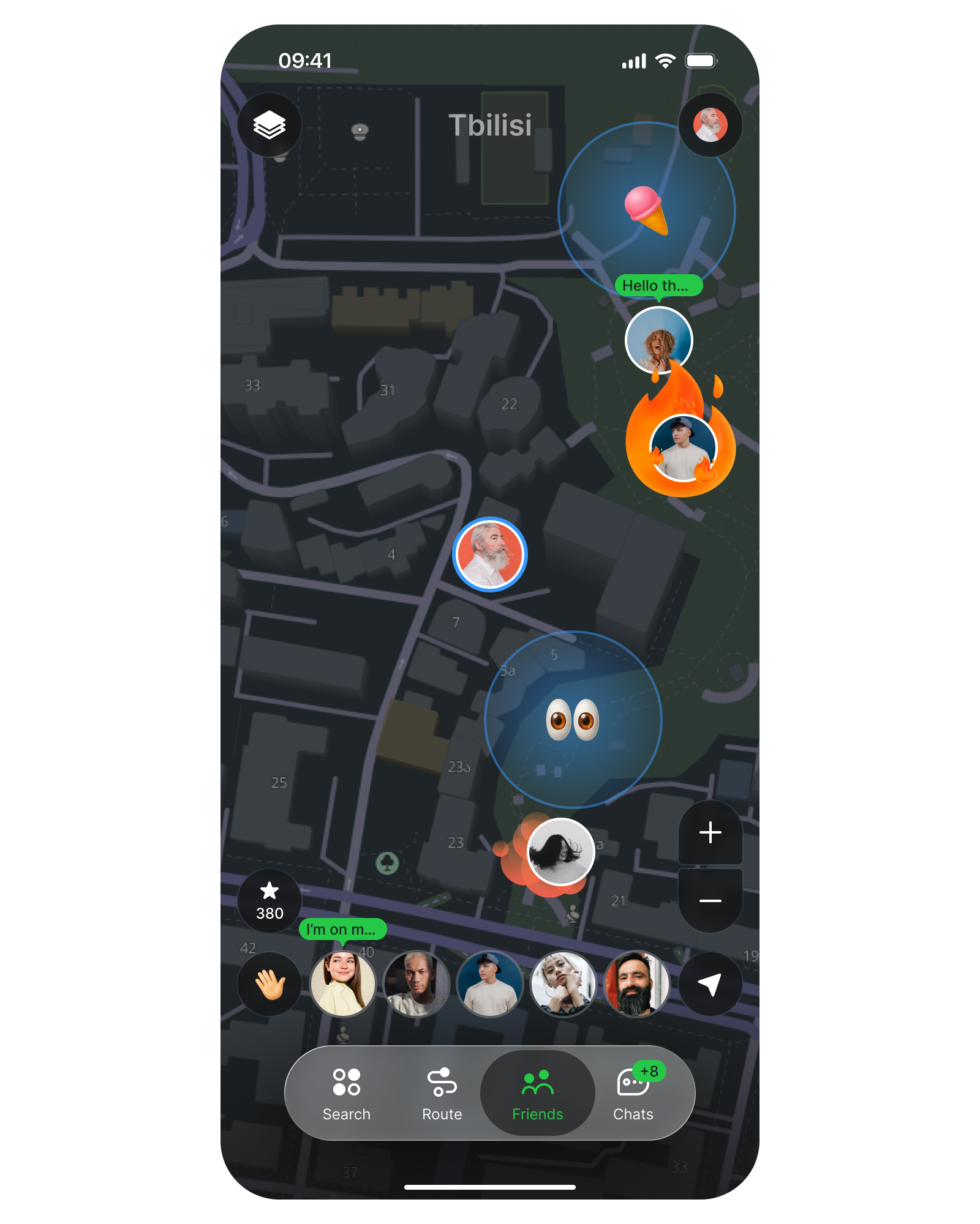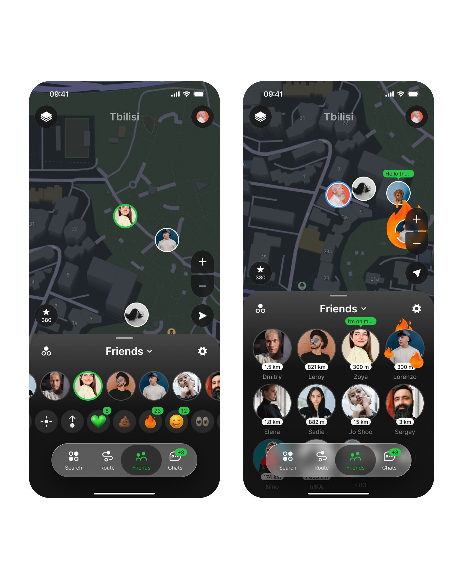 A concept of redesign and feature enhancement for 2GIS, aimed at increasing the number of active users and overall engagement through the development of Friends and Chats — a social layer that combines maps, communication, and shared experiences.
