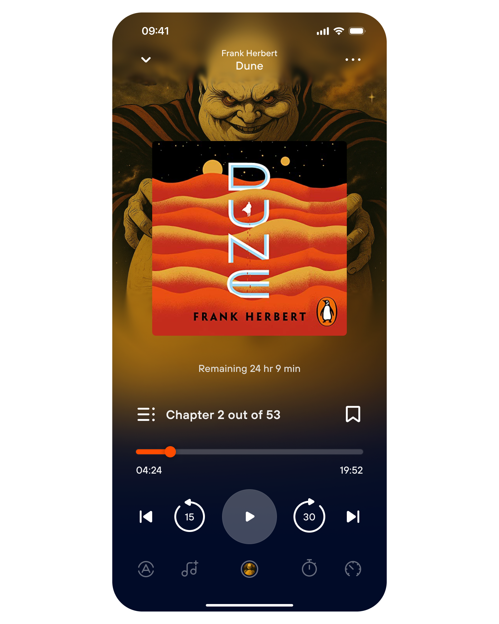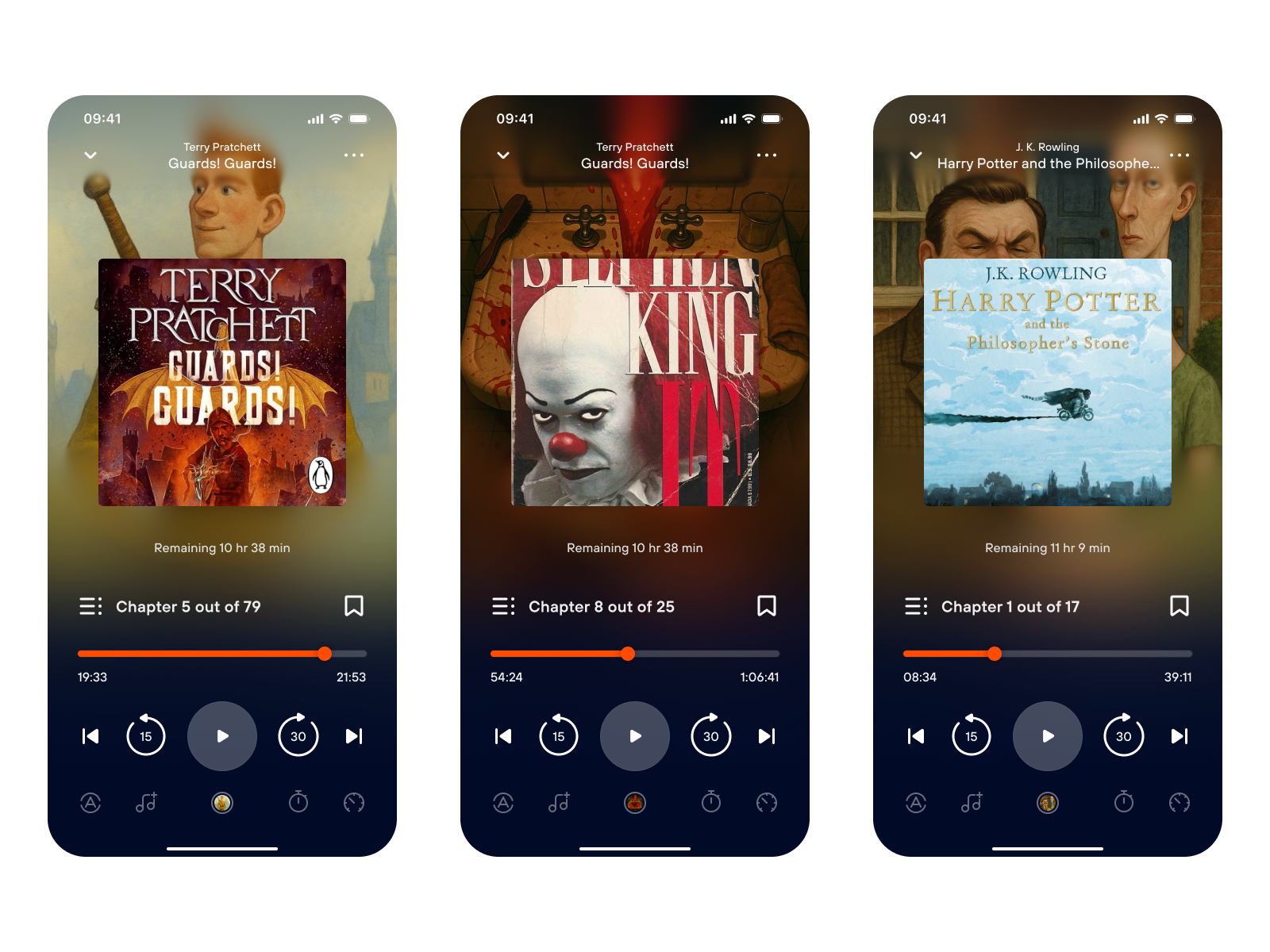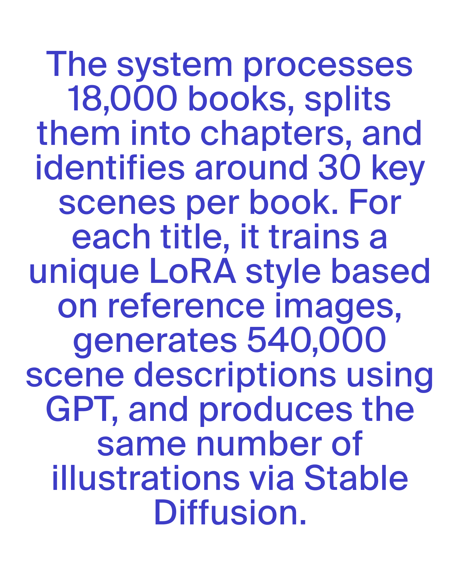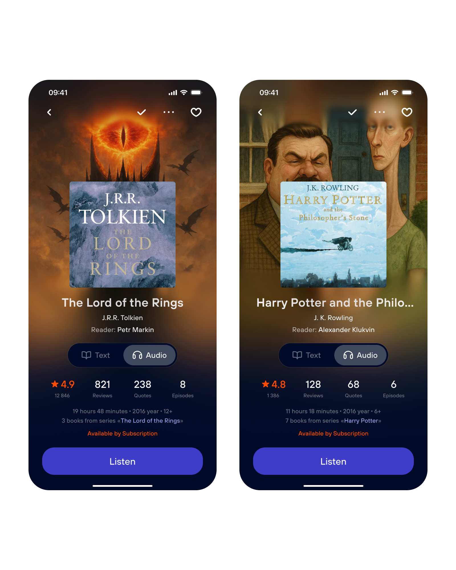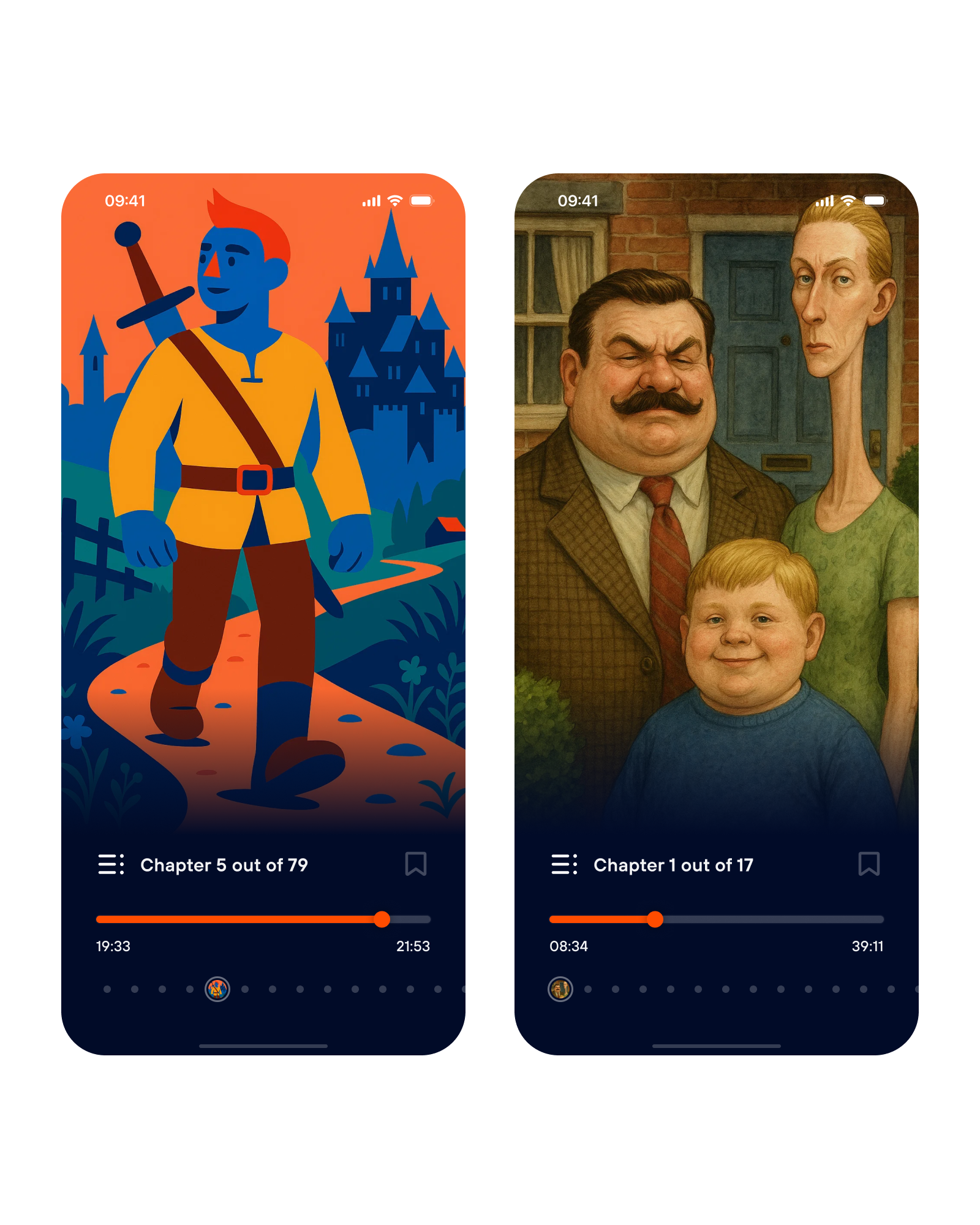 A concept for LitRes showing how AI-generated illustrations can enhance audiobooks by giving every chapter a unique visual identity and making the listening experience richer and more immersive.