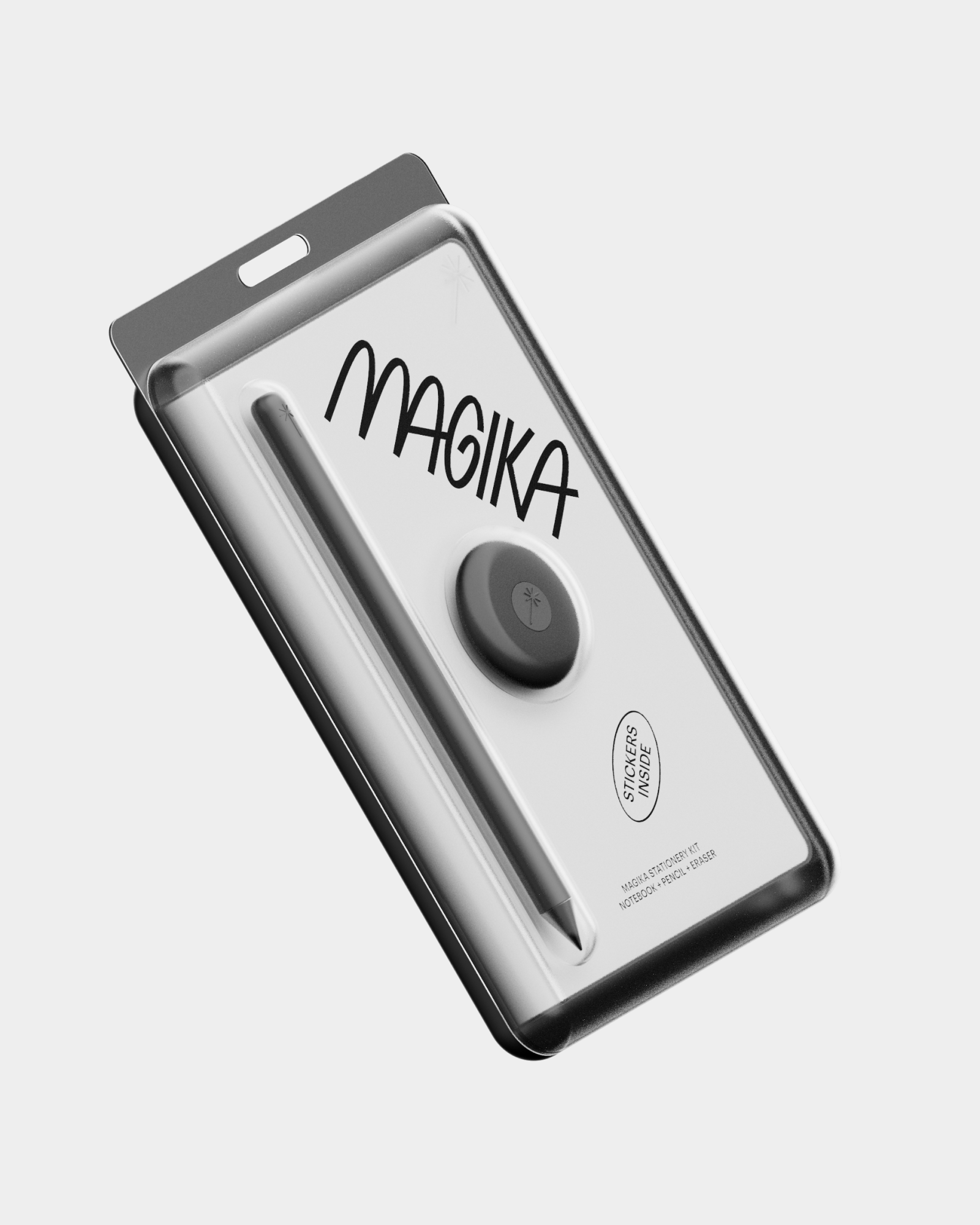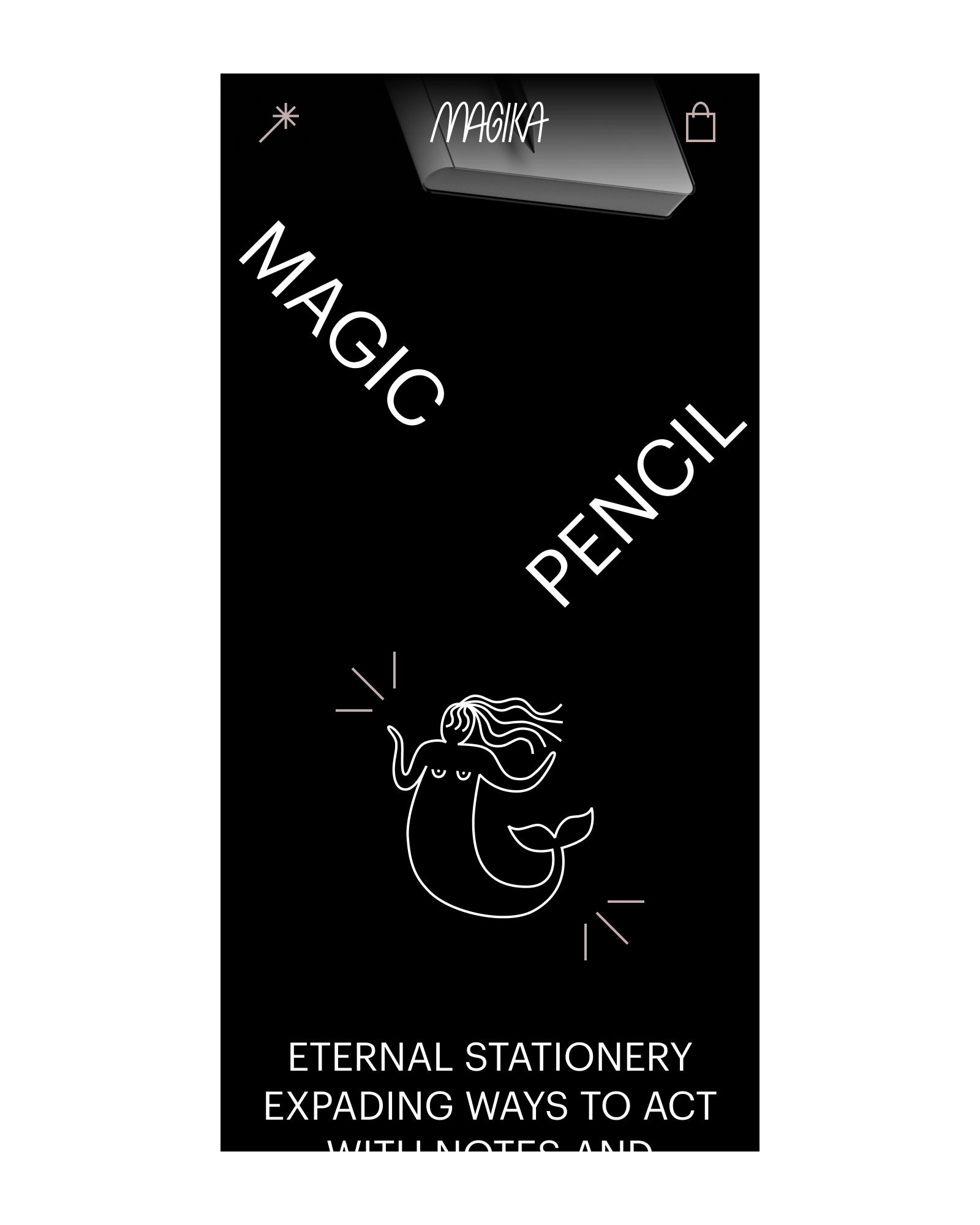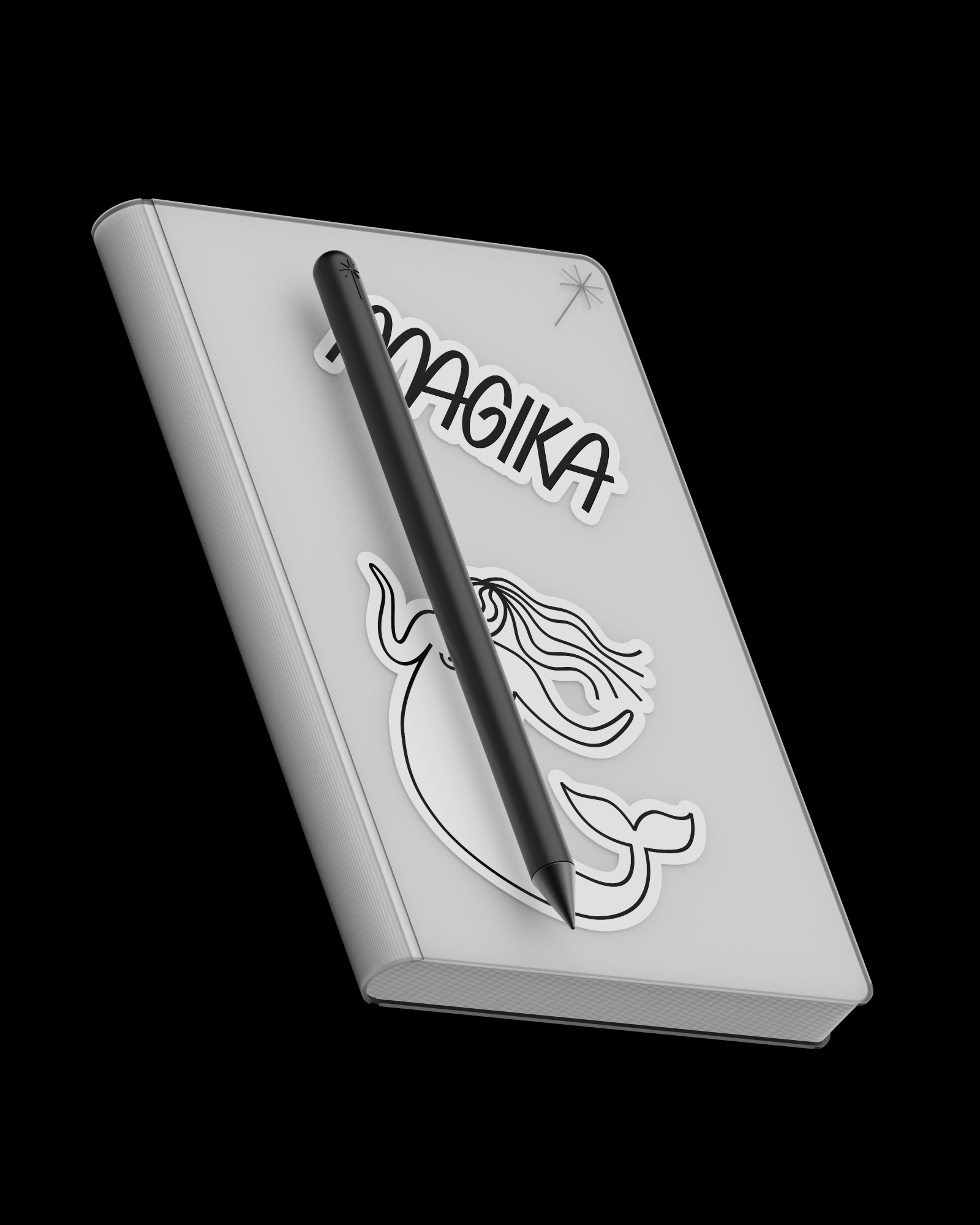 Magika is a product concept designed as part of a study project, including naming, brand identity, and physical product design for an everlasting stationery kit. Reinventing paper, Magika presents a waterproof notebook and an ever-writing metal pencil, redefining the way you draw and take notes.