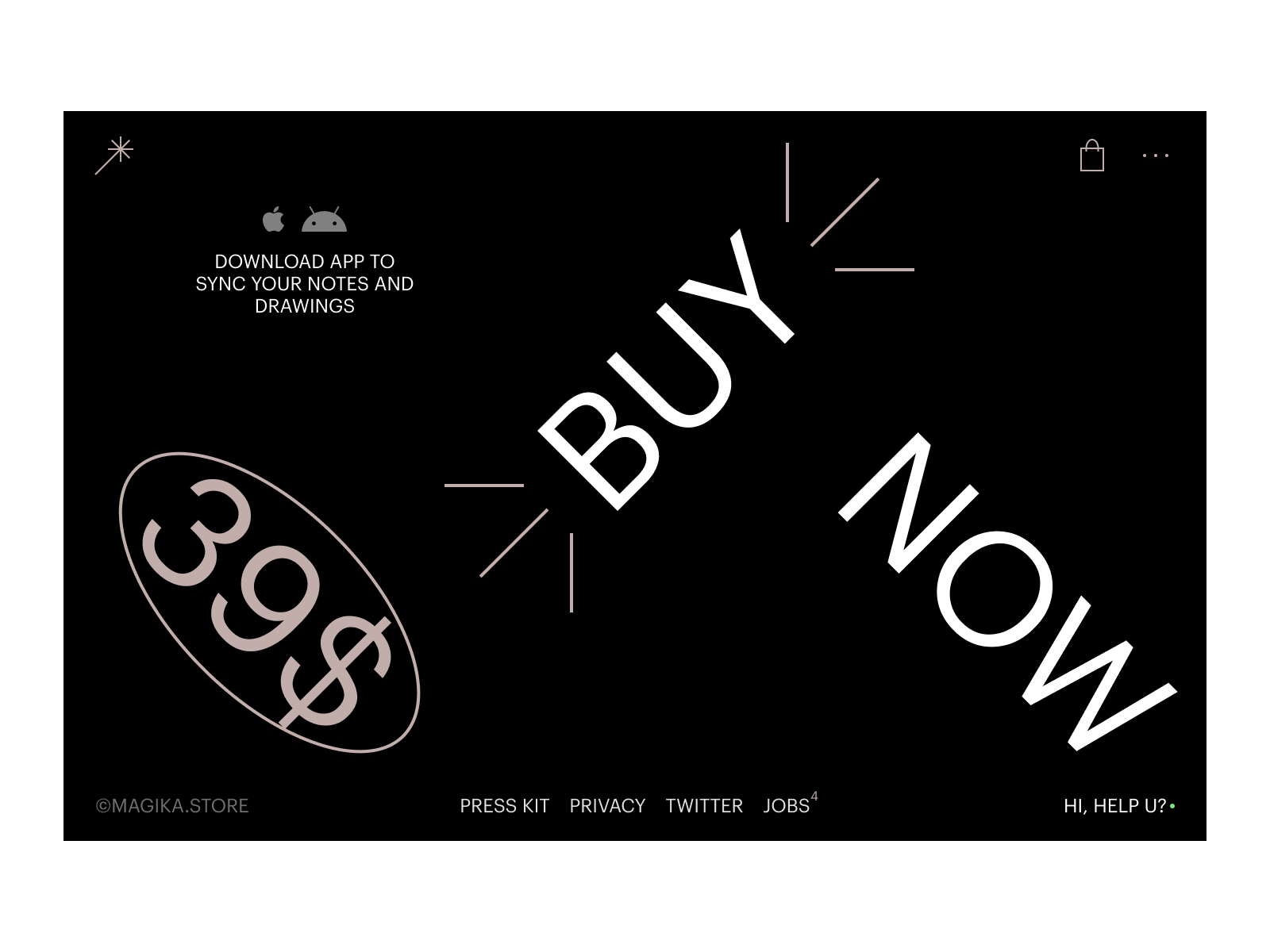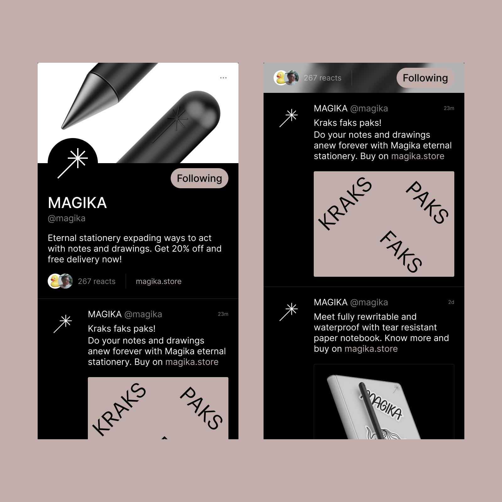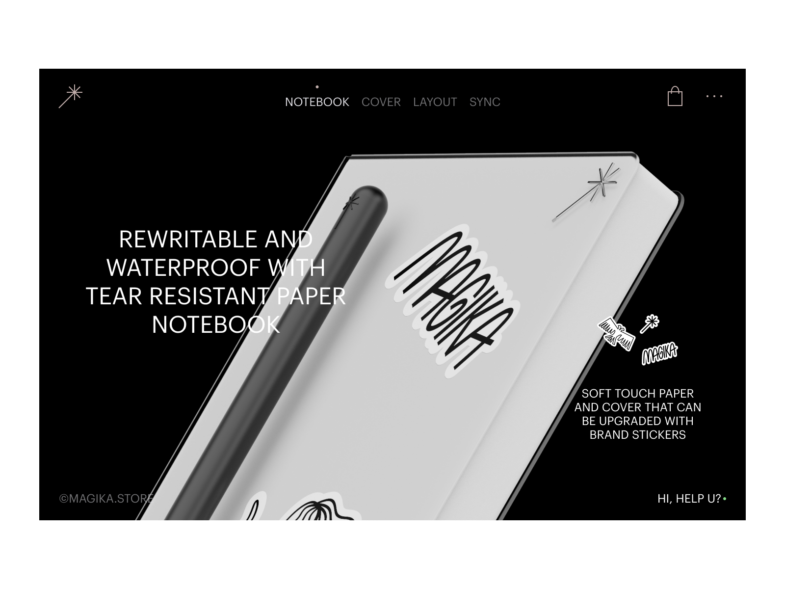 Magika is a product concept designed as part of a study project, including naming, brand identity, and physical product design for an everlasting stationery kit. Reinventing paper, Magika presents a waterproof notebook and an ever-writing metal pencil, redefining the way you draw and take notes.