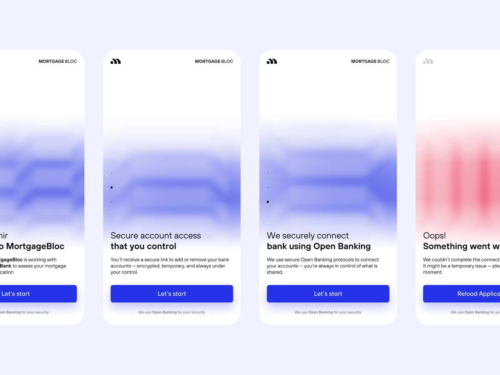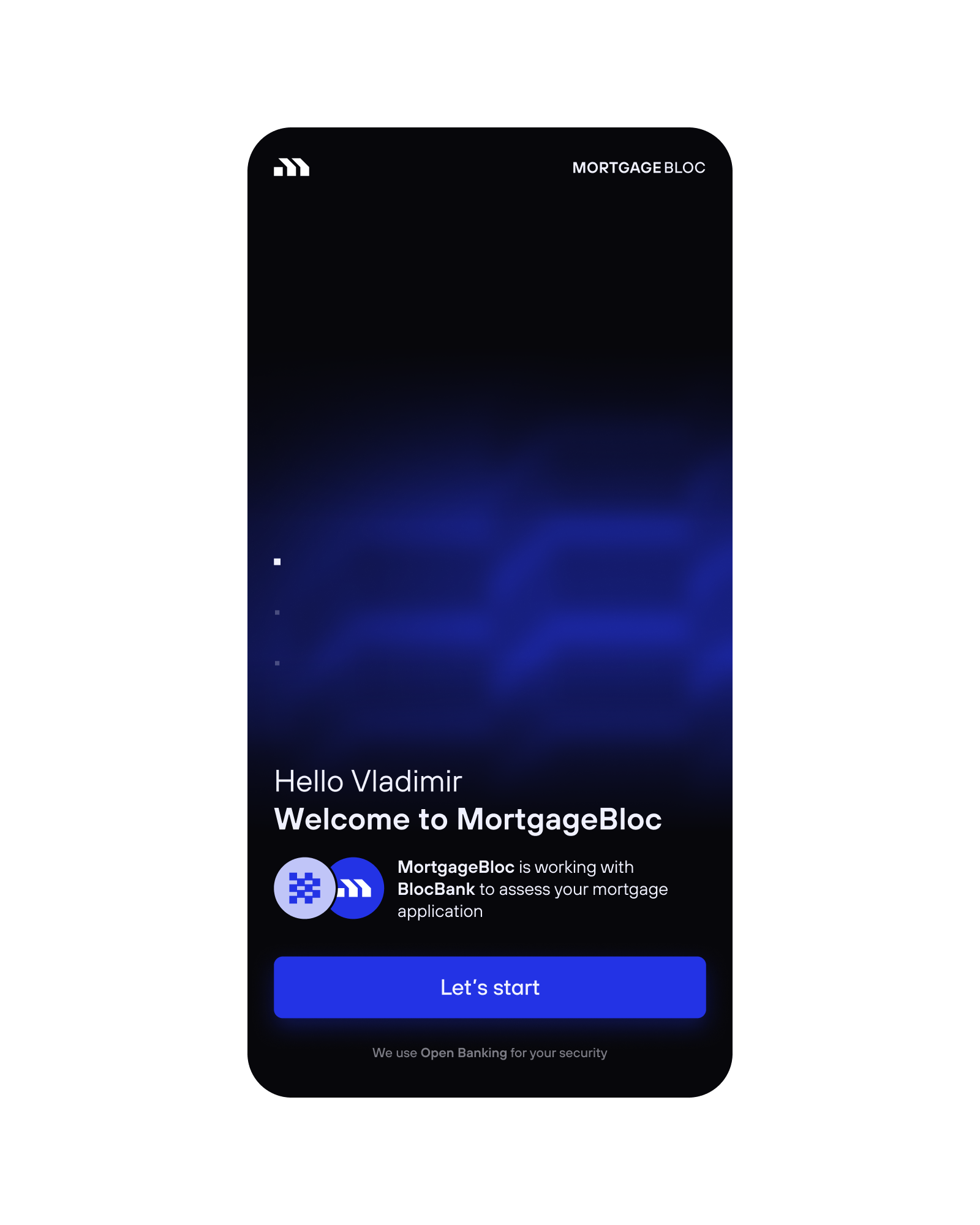 Mortgage Bloc is a web application designed to simplify the mortgage underwriting process by combining document collection flow, ID verification, and automated user transaction analysis.
