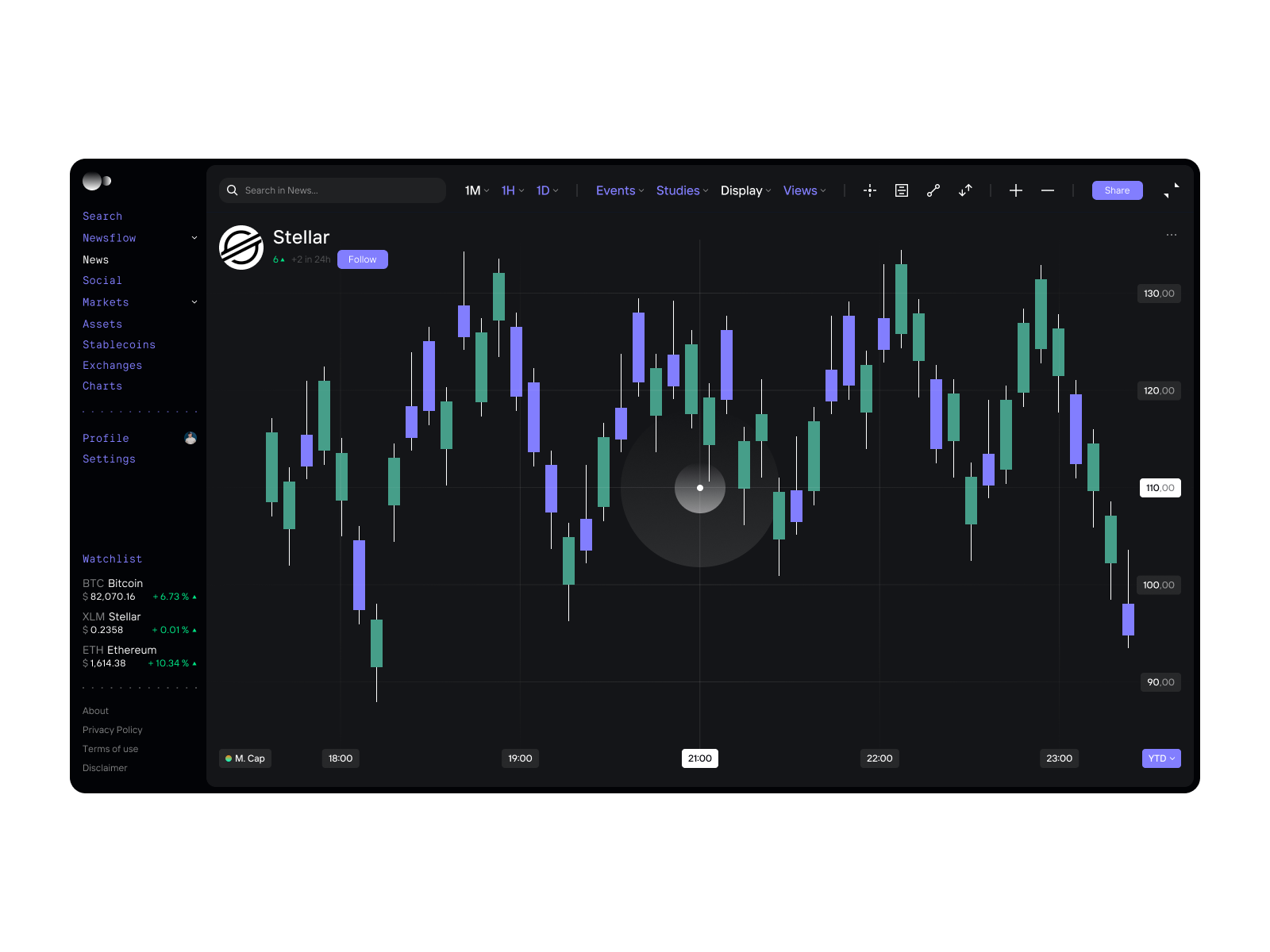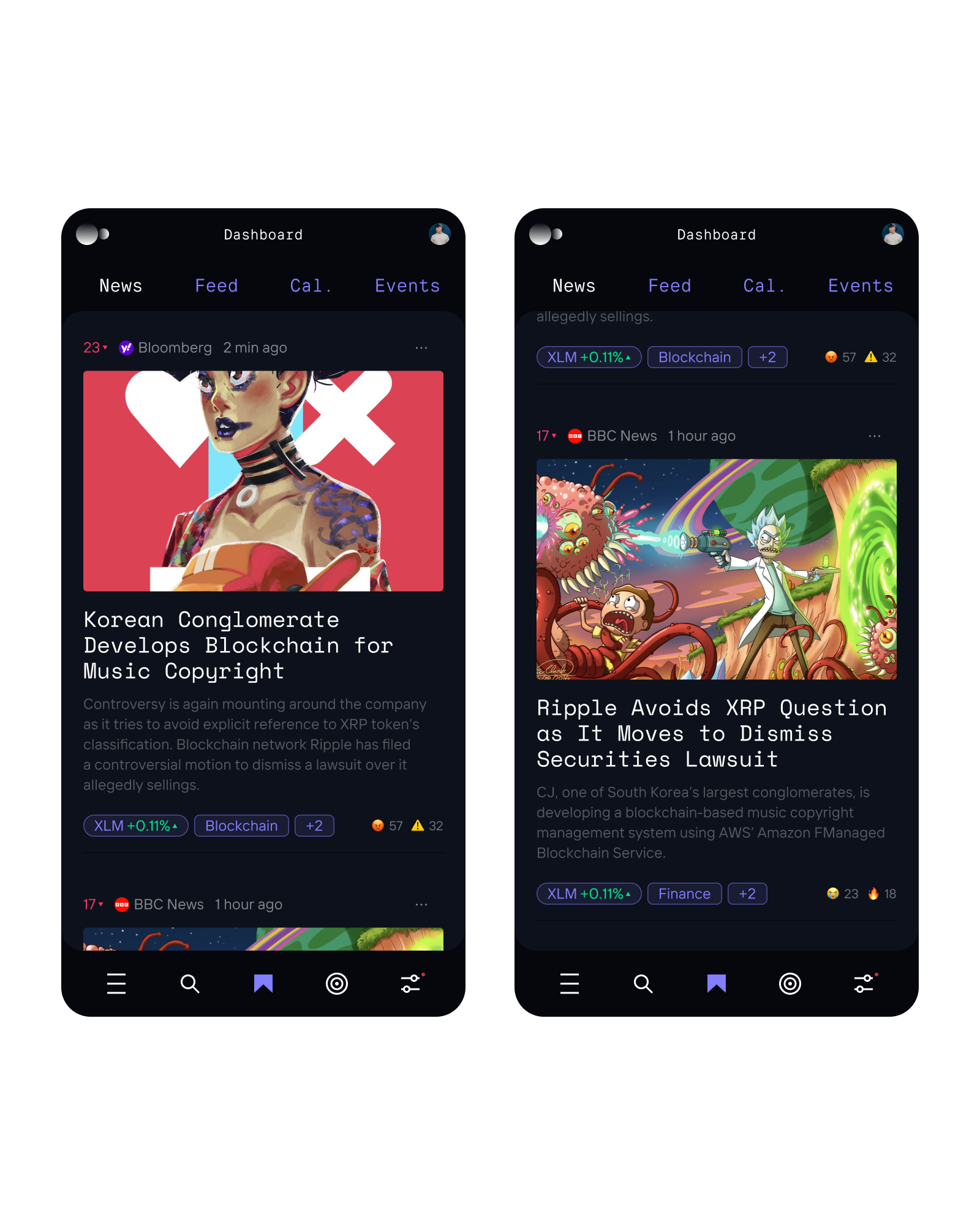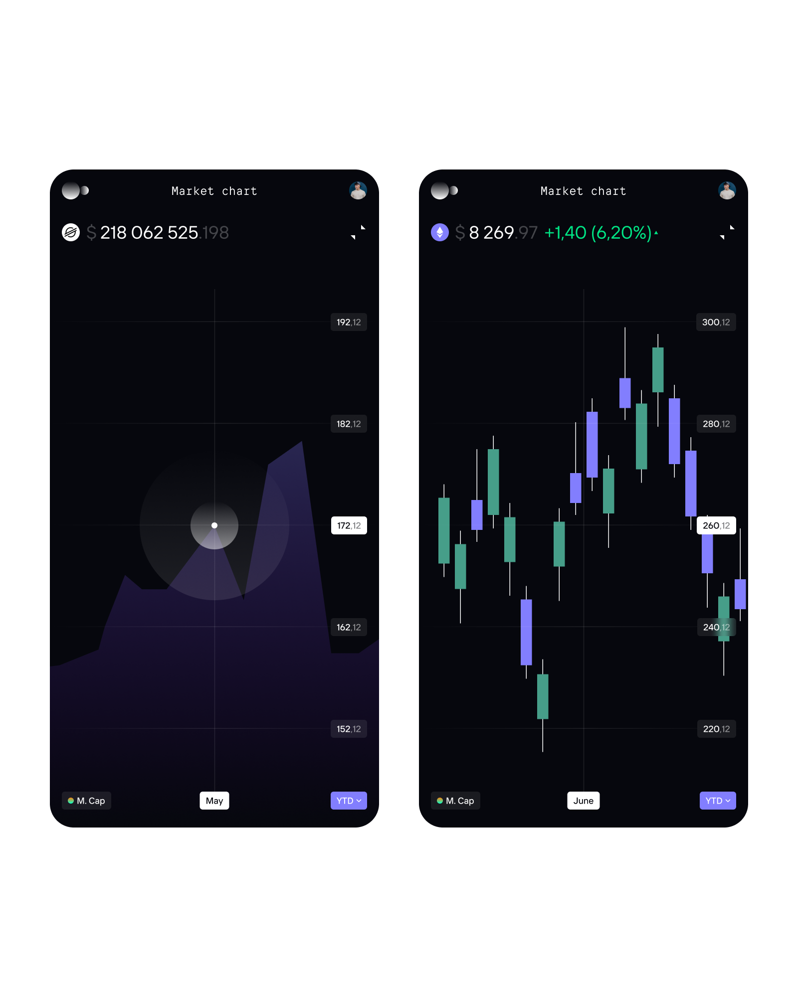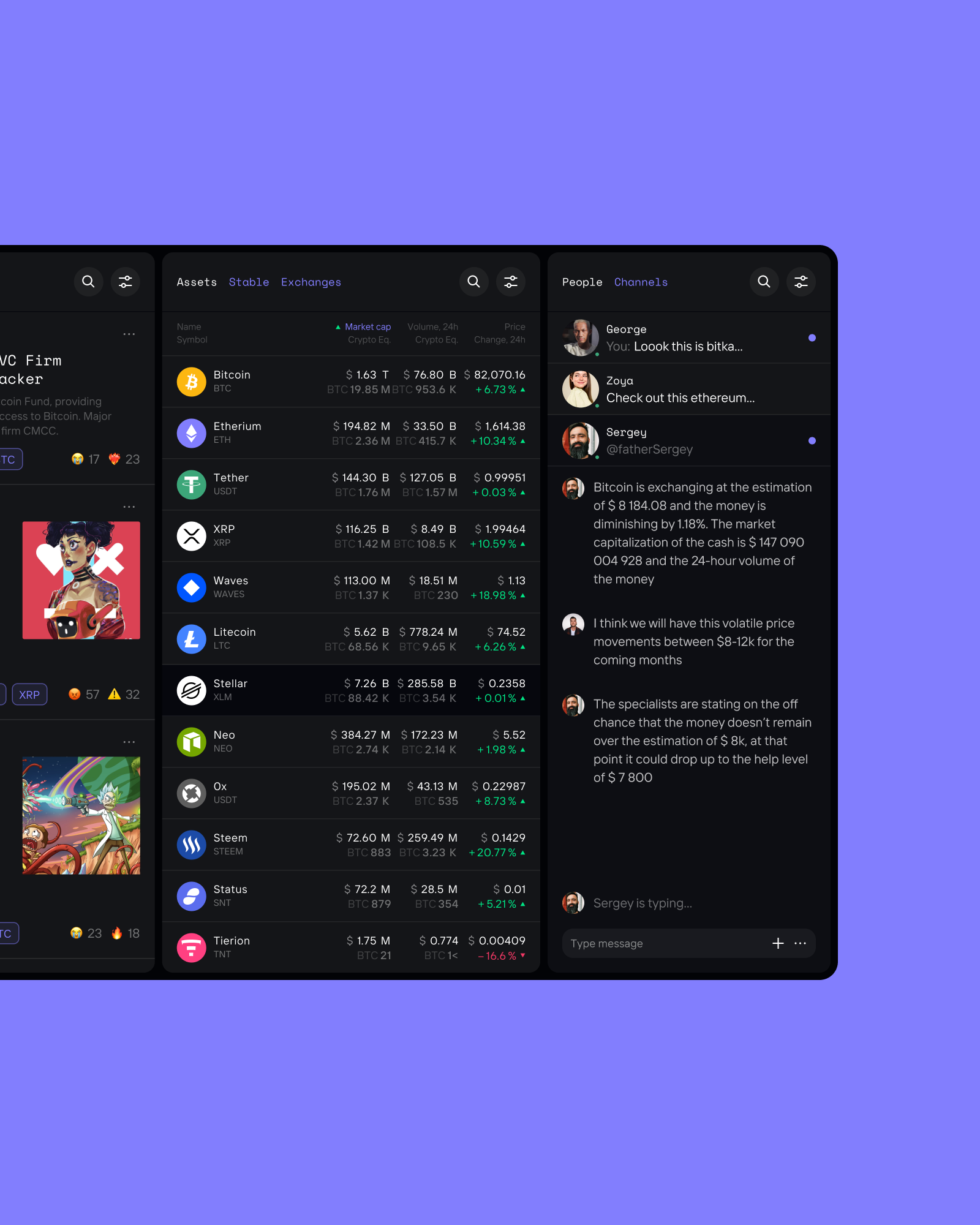 MoonHub aggregator provides news, cryptocurrency prices and charts, makes it possible to communicate with the community, manage your portfolio and even watch memes on one platform. The founders and developers of the startup teamed up with the agency’s team to create a digital identity and design the app interface.