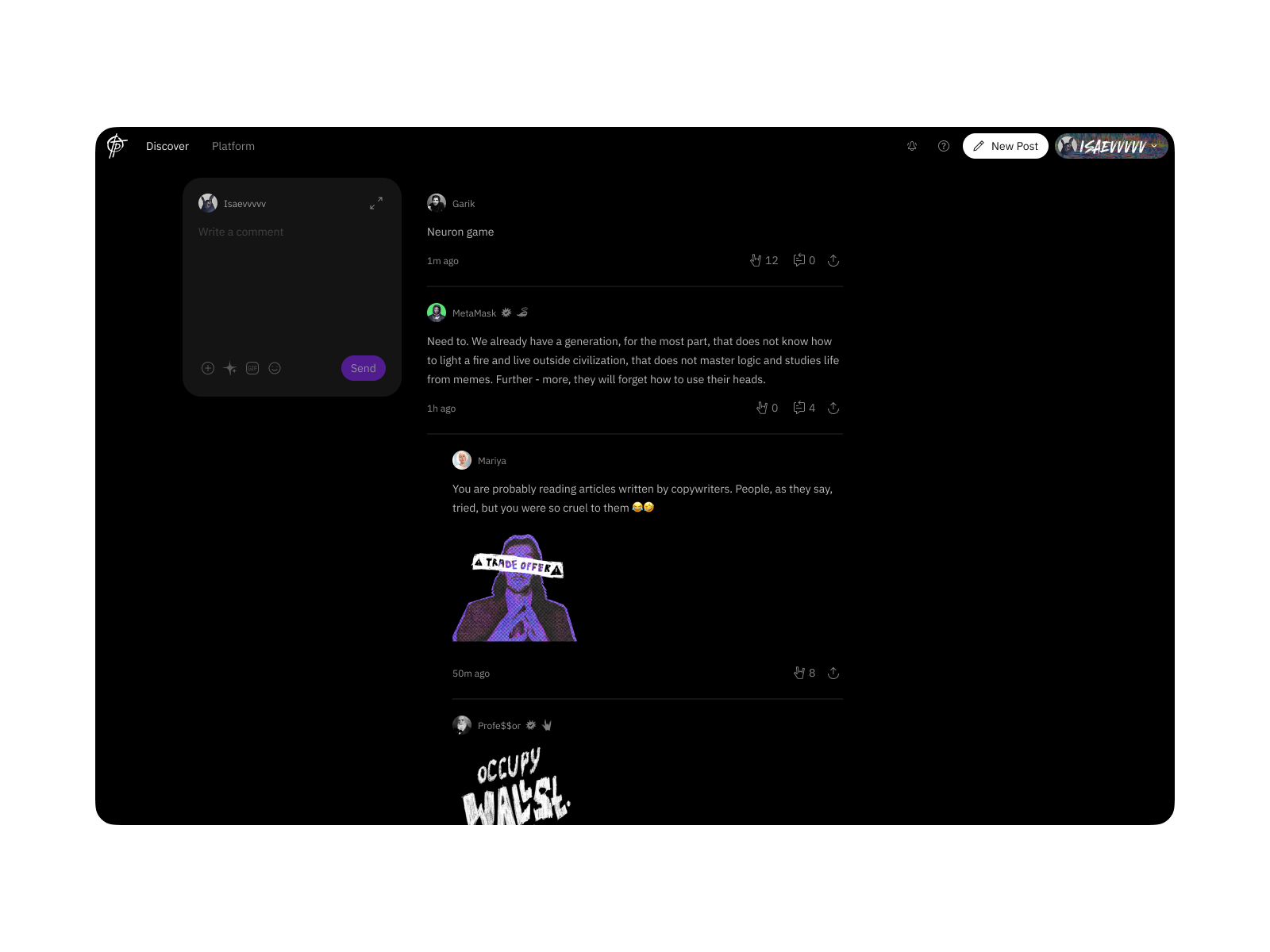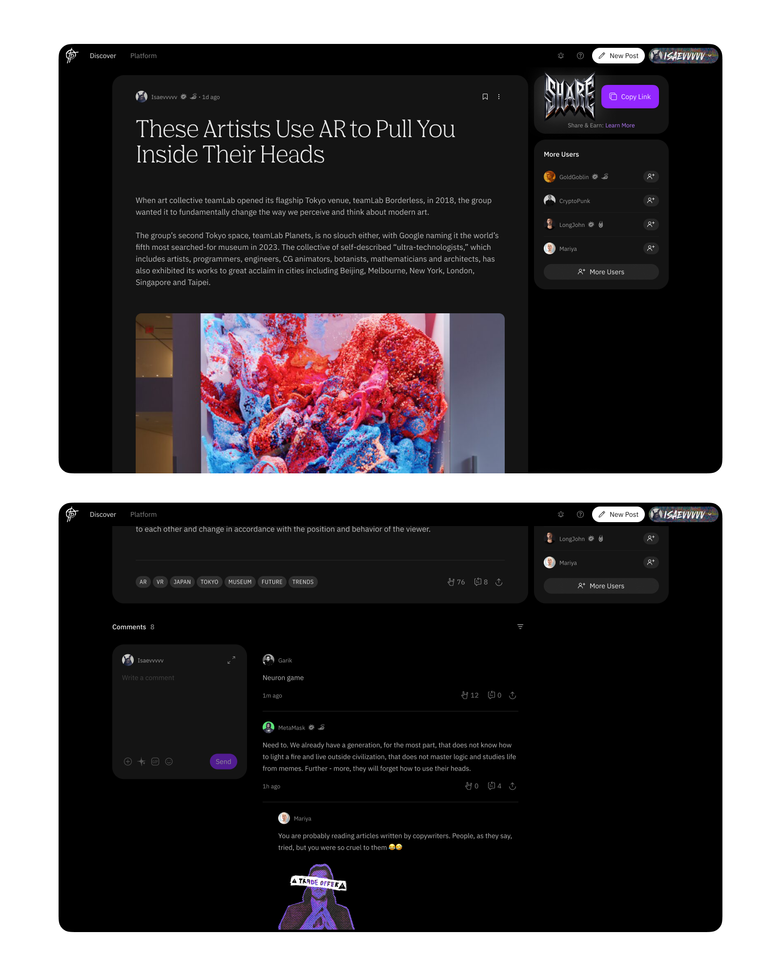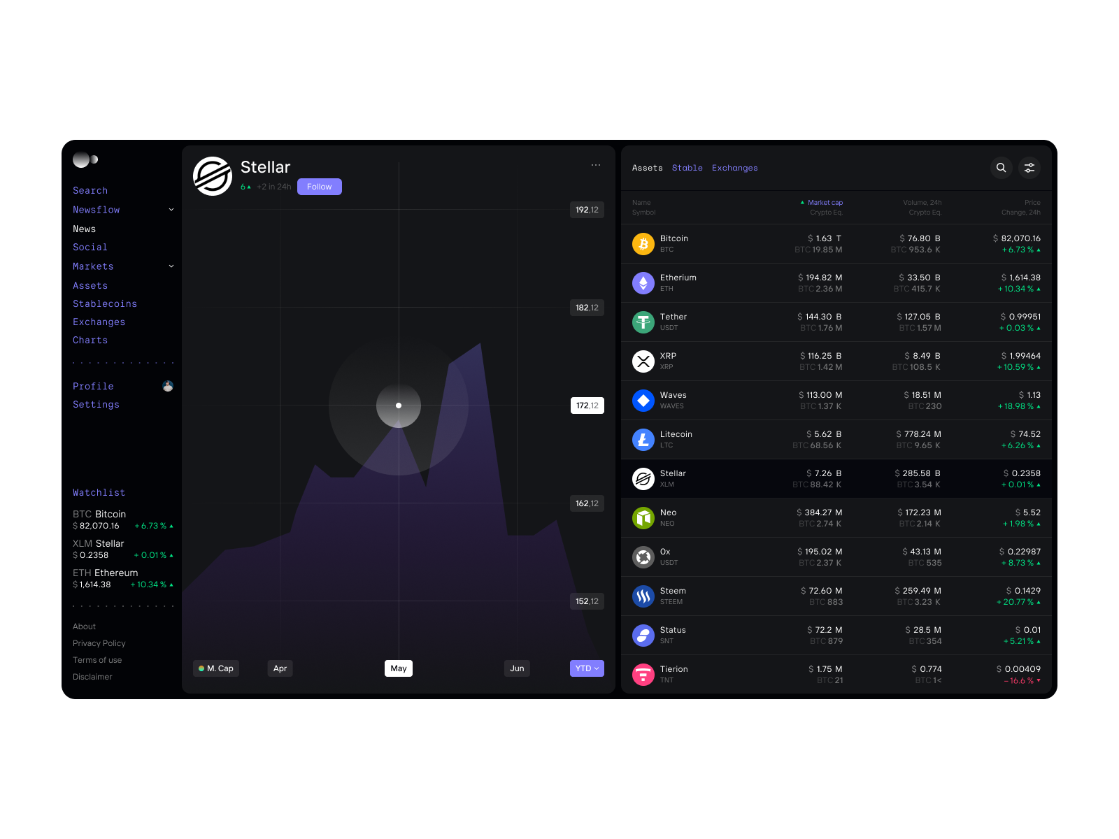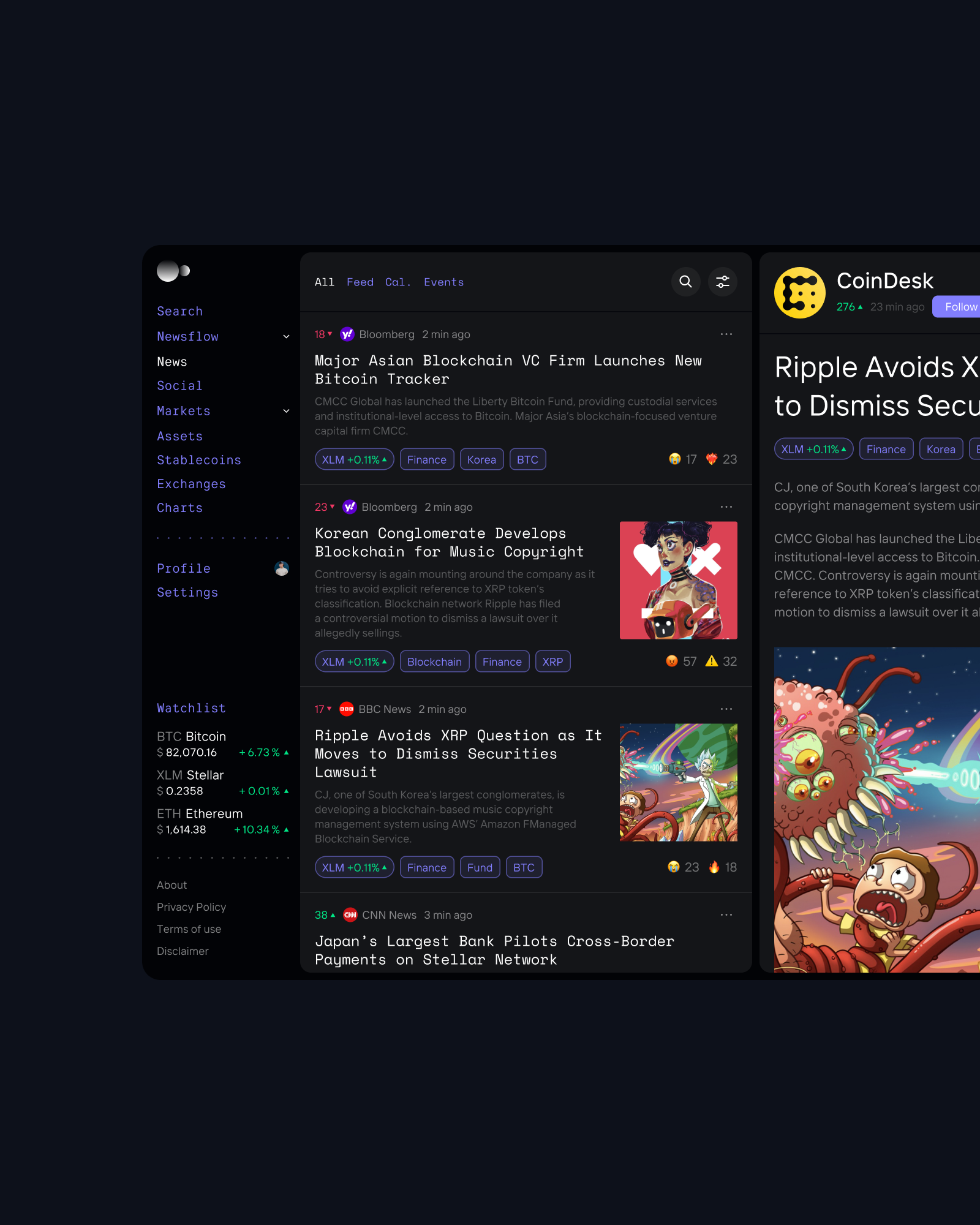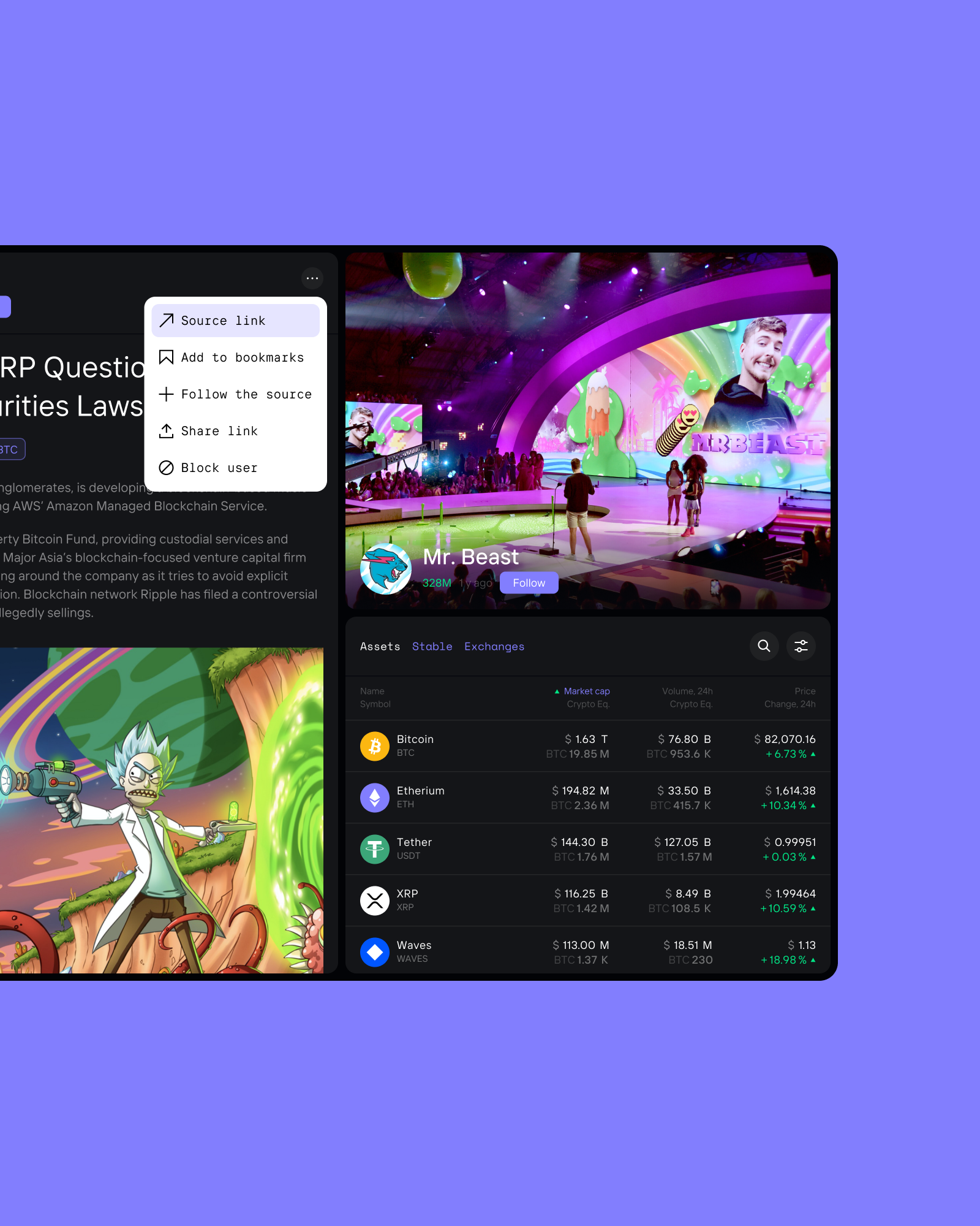 MoonHub aggregator provides news, cryptocurrency prices and charts, makes it possible to communicate with the community, manage your portfolio and even watch memes on one platform. The founders and developers of the startup teamed up with the agency’s team to create a digital identity and design the app interface.