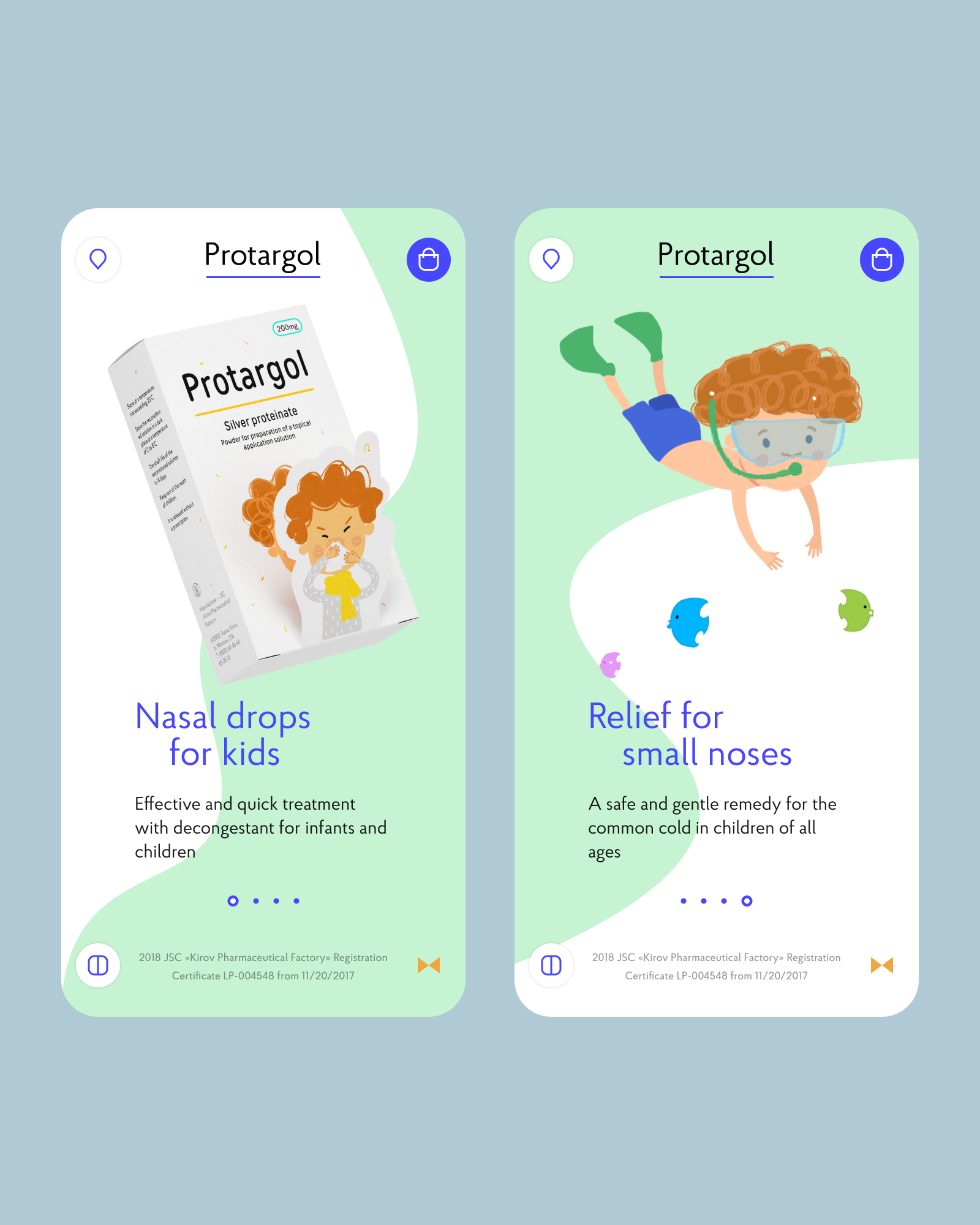 Protagol is a new medicine for the treatment of the common cold in children. We created identity, packaging and a website for launching the product on the Russian market.