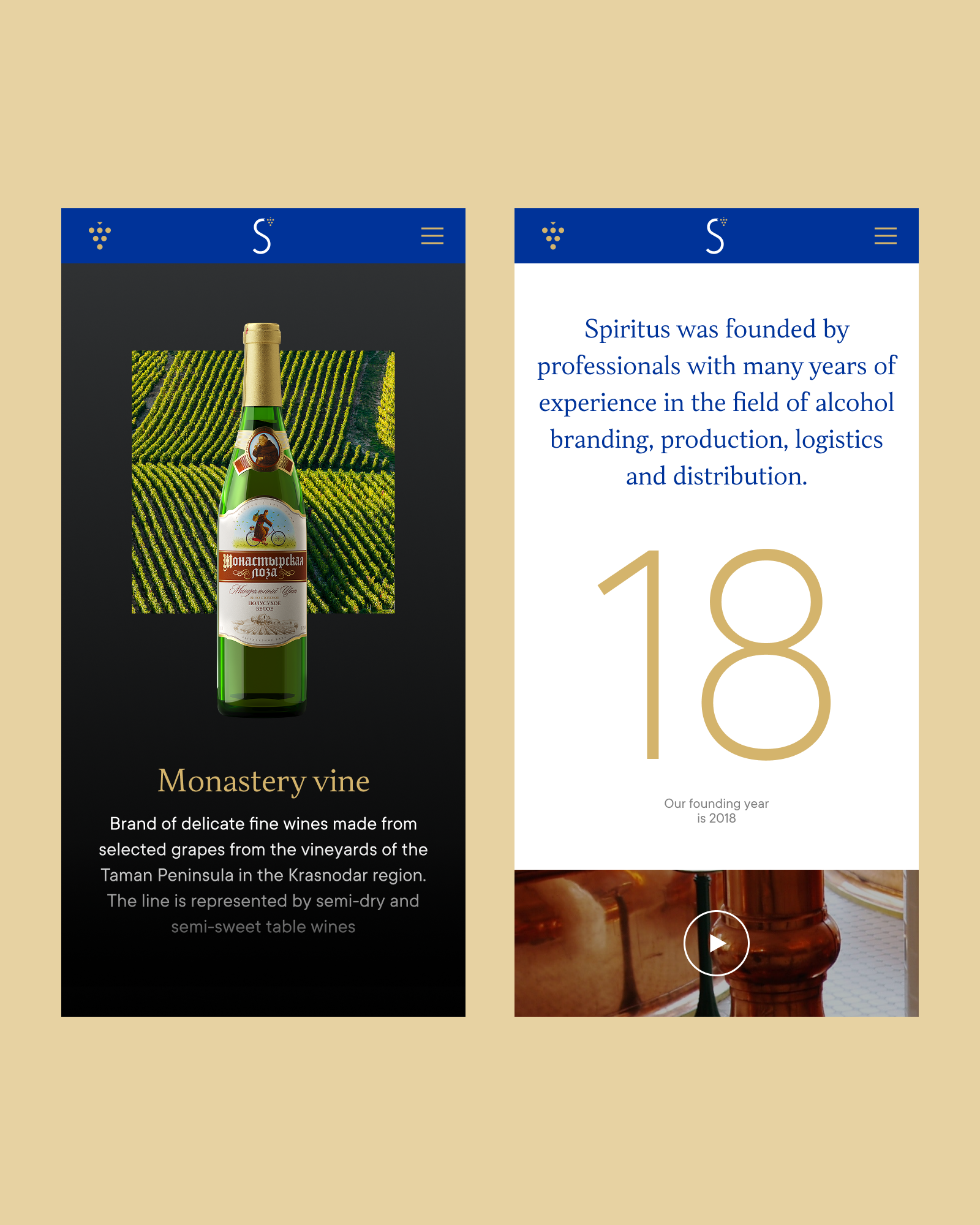 Spiritus is an expert in logistics and alcohol production. After creating the new brand, our task was to develop and launch company website. The website tells about the history and services of the company, the process of production of alcoholic drinks, and also shows a catalog with its own brands.