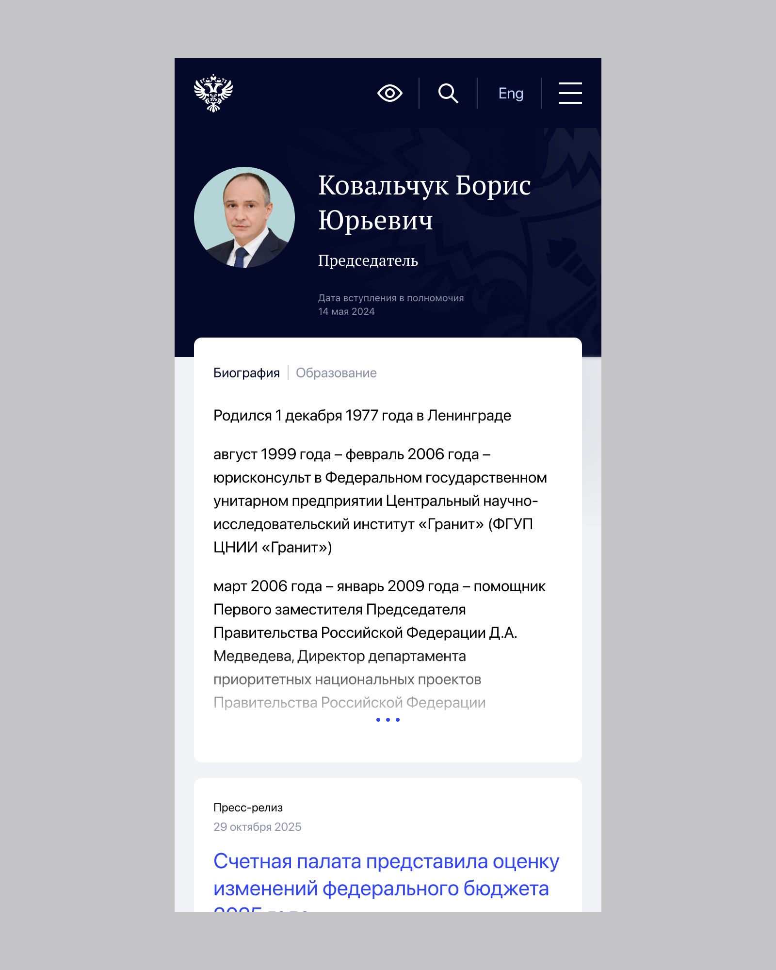 The Accounts Chamber performs an audit of budget funds and state resources in general. One of the strategic goals of this agency is to increase openness and accountability of the government agencies; and up-to-date and user-friendly website is critical for this purpose.