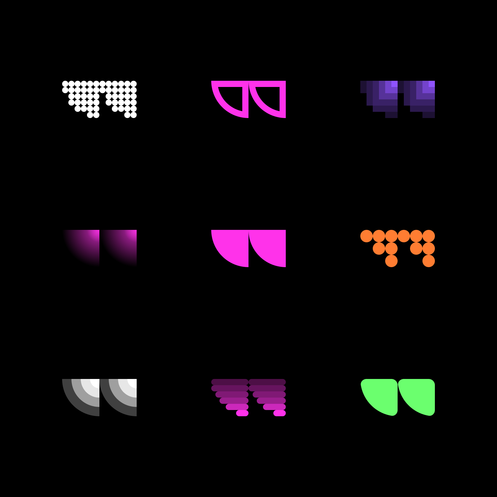 A selection of identities and visual experiments developed for startups, small teams, and independent products—bringing together logo design, digital aesthetics, and expressive brand systems to shape distinctive and scalable visual languages.